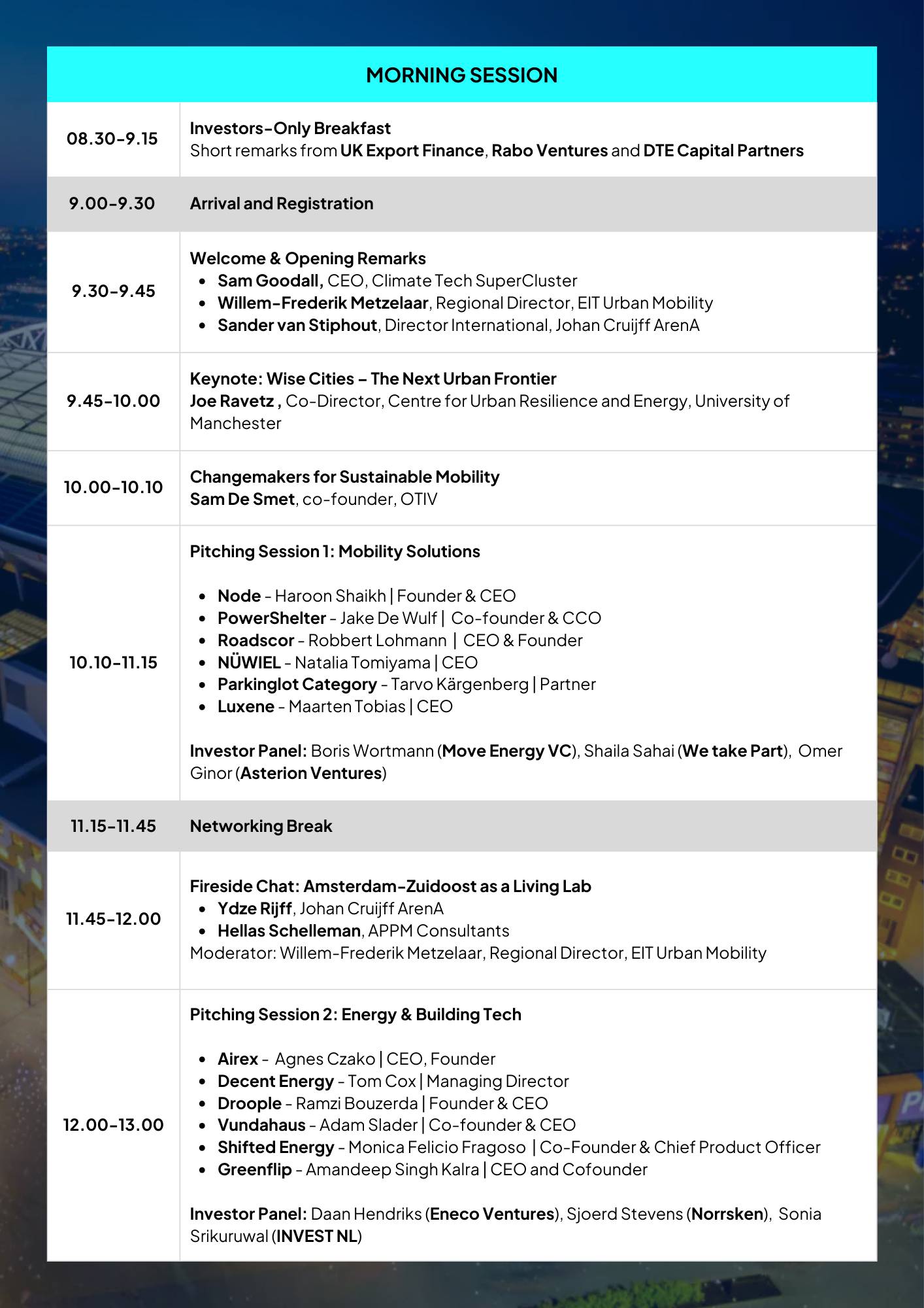 Note: This list is only be distributed to attendees – either through a personal email or via the QR code which is placed on the Cleantech Venture Day name badge.