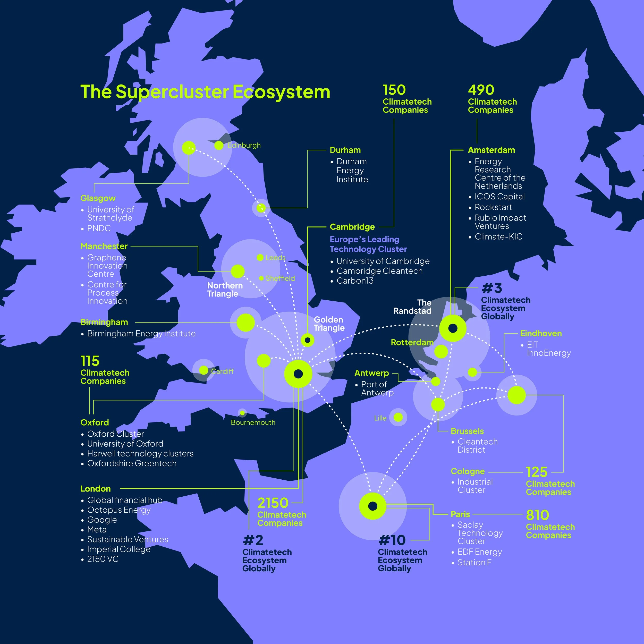What you’re looking at is a collection of some of the world’s most prolific climate tech clusters. What’s special is that they’re all reachable within four hours by train from London.